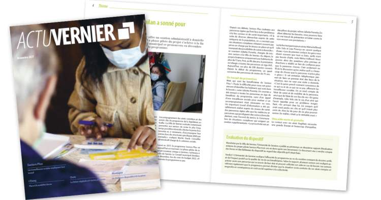 Dans le cadre de Seniors Plus, la Ville de Vernier off re un soutien administratif à domicile à ses aînés fragilisés. Avec douceur et patience, les travailleuses sociales accompagnent les personnes âgées dans leurs démarches, leur permettant de rester chez elles le plus longtemps possible. Alors que la phase pilote du projet touche à sa fi n, l’équipe en place détaille son engagement dans ce numéro du magazine communal.